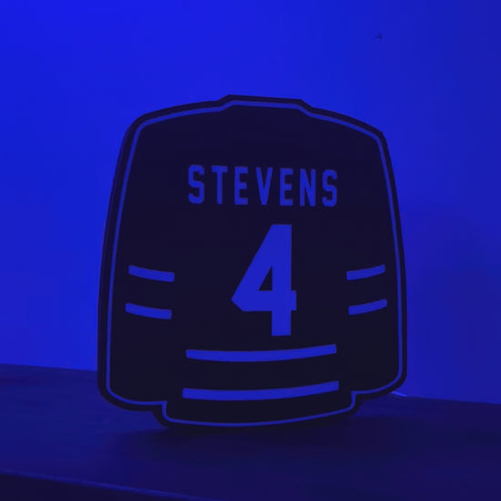 Score big with the Stevens 4 Jersey Lightbox! A fun and functional addition for any sports fan, this lightbox adds flair to any room. Don't miss out on this unique and playful piece. Show off your love for the game and shine like a star with this must-have item.